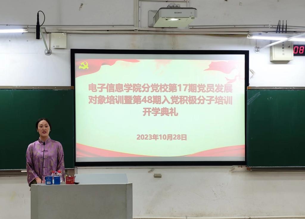 10月28日上午,电子信息学院党委分党校首期(第17期发展对象培训暨第48期入党积极分子培训)培训班开学典礼在新校区举行,学院党委书记、分党校校长李长庚出席典礼,来自学院的42名入党积极分子和20名党员发展对象参加。大会由党委副书记、分党校副校长董晶晶主持。