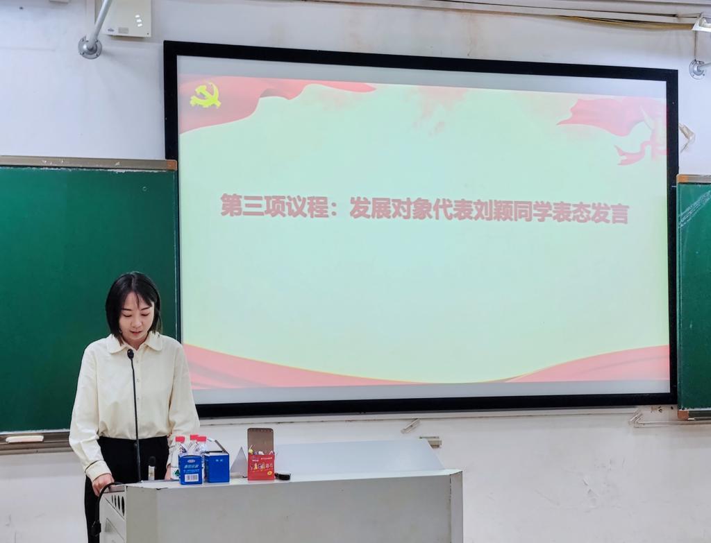 入党积极分子代表廖玉婷表达了对中国共产党的感恩、崇敬之情和渴望入党的满腔热忱,表态将认真学习党的创新理论成果,加强理论联系实际的能力,持续提高批评与自我批评的自觉性。以青春之我、奋斗之我,为民族复兴铺路搭桥,为祖国建设添砖增瓦,为党和国家事业发展贡献青春力量、展现青春担当。