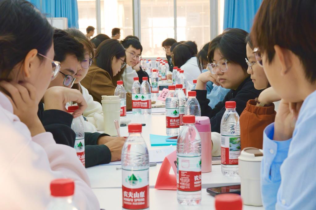 为促进学以致用,大会还精心设置了团日活动模拟策划环节。各学院团支书通过混合编组,围绕“阔步奔赴‘十五五’,奋勇争先绘青春”“青年筑安全防线,携手护校园安澜”“青春跃动强体魄,体育凝心绽芳华”这三个紧扣时代、贴近青年的主题,开展了热烈而深入的小组讨论,协商制作了兼具思想性、创新性与可行性的团日活动模拟策划书。在随后的抽签展示中,被抽到的小组代表条理清晰地陈述方案,分享精彩纷呈的创意,充分彰显了学科交叉融合与团队协作创新的显著优势。评委嘉宾的点评精准深刻,所提出的优化建议务实中肯,有效启发了大家的思考。现场互动交流积极,思维碰撞热烈,实现了互学互鉴的良好效果。