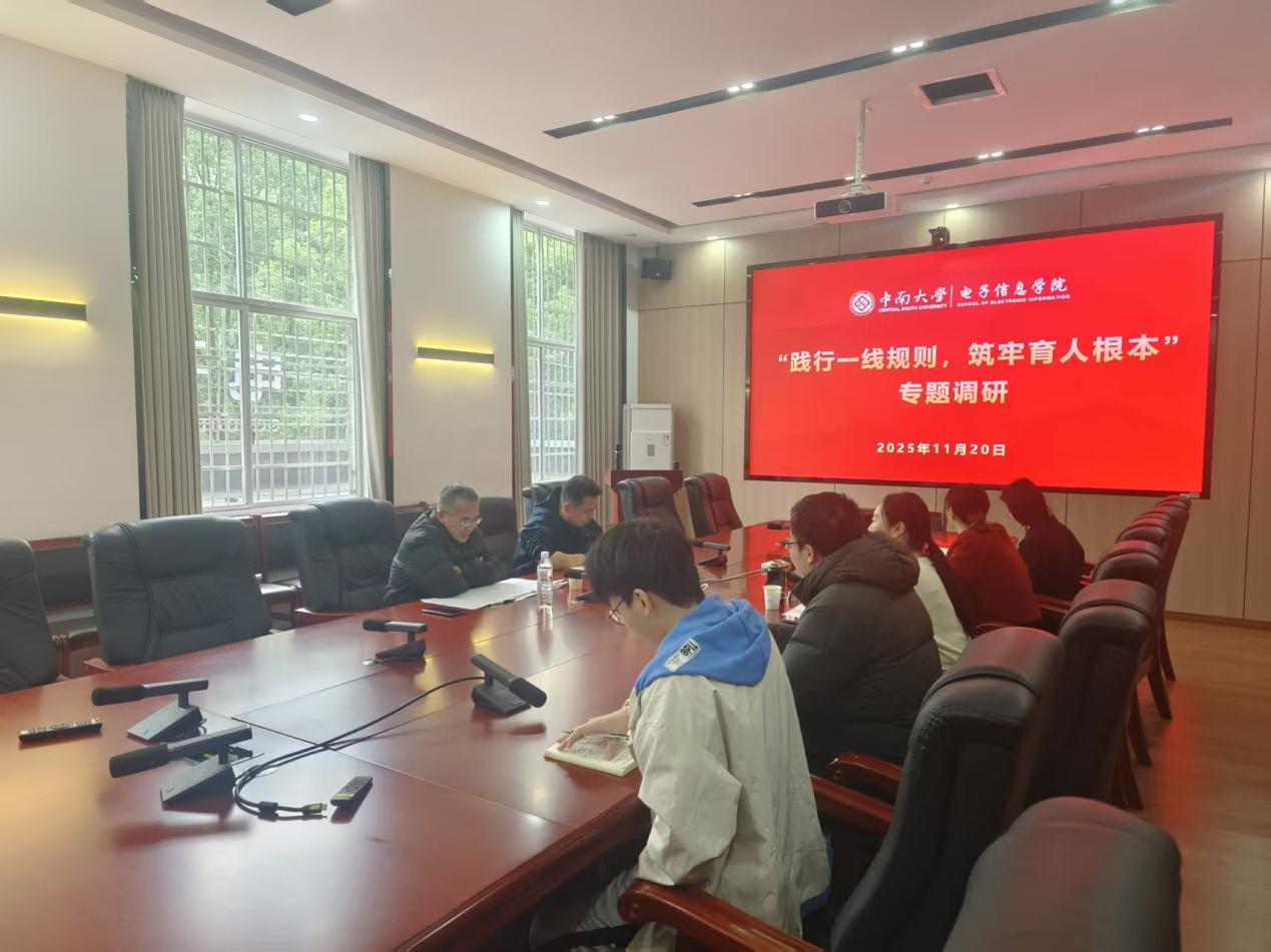 为高质量实施“新时代立德树人工程”,进一步推动辅导员深入践行“一线规则”要求,夯实岗位职责,筑牢思想防线和安全防线,2025年11月20日,学生工作部姚勇副部长一行到电子信息学院开展2025年秋季学期“践行一线规则,筑牢育人根本”专题调研。学生工作部民族学生事务办公室哈纳提、电子信息学院党委副书记董晶晶及全体辅导员参加调研座谈会。